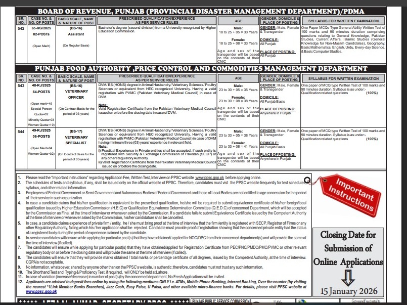 PPSC has advertised vacancies for the Provincial Disaster Management Authority (PDMA) under Advertisement No. 51/2025 as well.