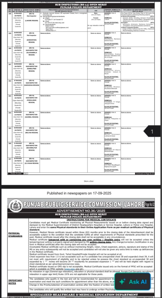 There are only a few days to go, pass the eligibility criteria, and apply online through PPSC before 2nd October 2025, and take your first step towards becoming a Sub Inspector in Punjab Police.